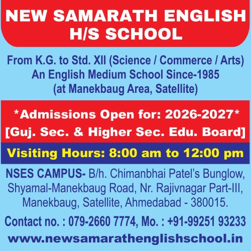 New Samarath English H/S School got established on 5th August 1980. Smt. Tanna Mahadevia and Shantaben Mahadevia have established this Educational Institution in a view to strengthen English Education under Gujarat State Education Board. We have the classes ranging from K.G. till 12th Std. We offer Science, Commerce and Arts Streams for Std. 11th, 12th.